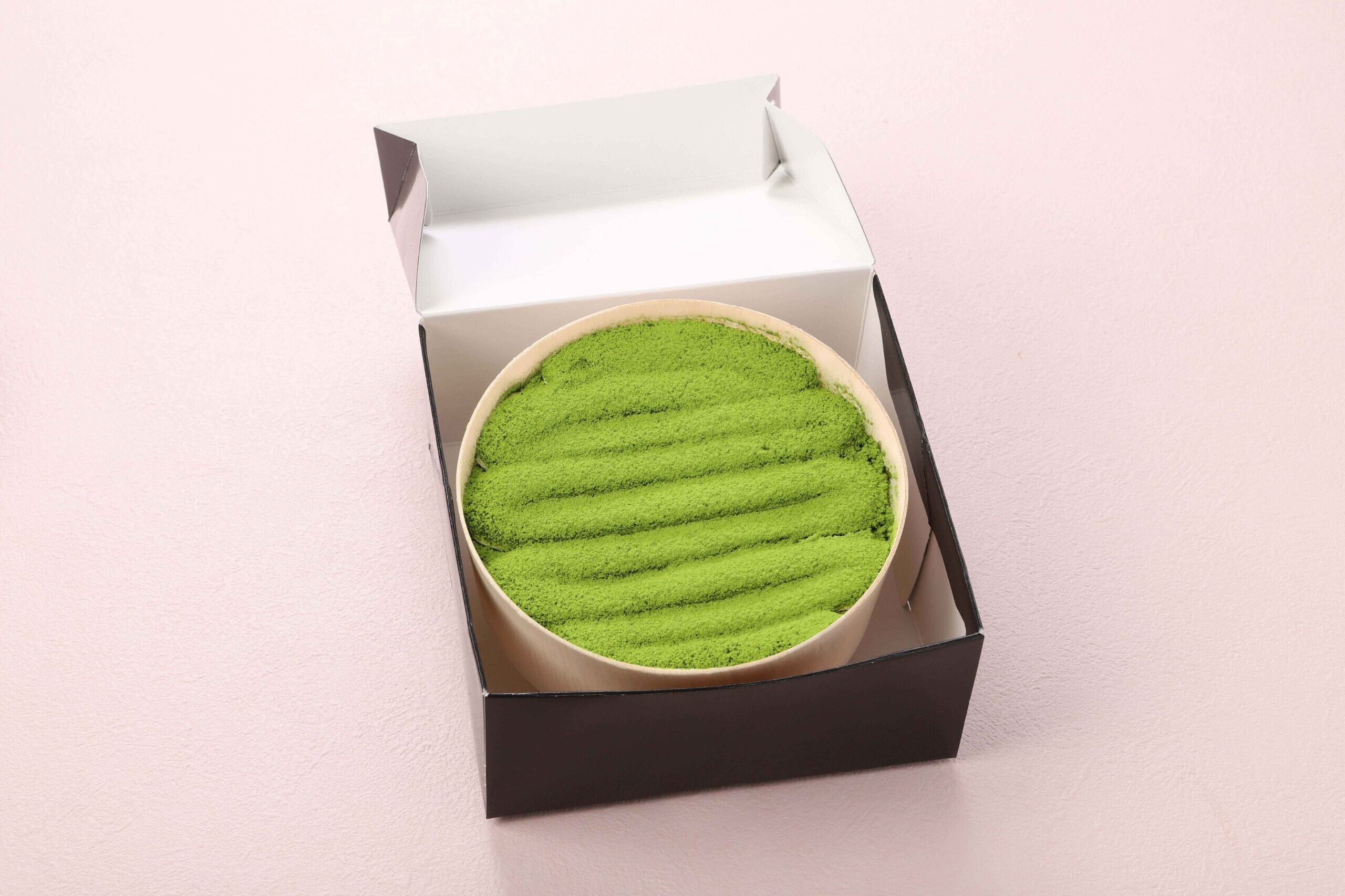 ウッドケースでじっくり焼き上げたクリームチーズケーキは、濃厚でコク深く、抹茶スポンジと抹茶シロップを重ねることで、和の深みをプラス。さらに、なめらかなティラミスクリームを重ね、仕上げに鮮やかな宇治抹茶をたっぷりと振りかけました。その見た目はまるで、抹茶畑を思わせる美しい風景。